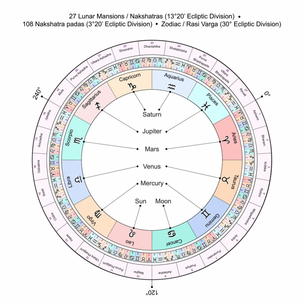 Nakshatra literally translates to “that which never decays” or is sometimes poetically called the “star-body of the Moon.” The system divides the 360-degree ecliptic (the path of the planets) into 27 distinct segments, each measuring 13 degrees and 20 minutes (13°20′).2